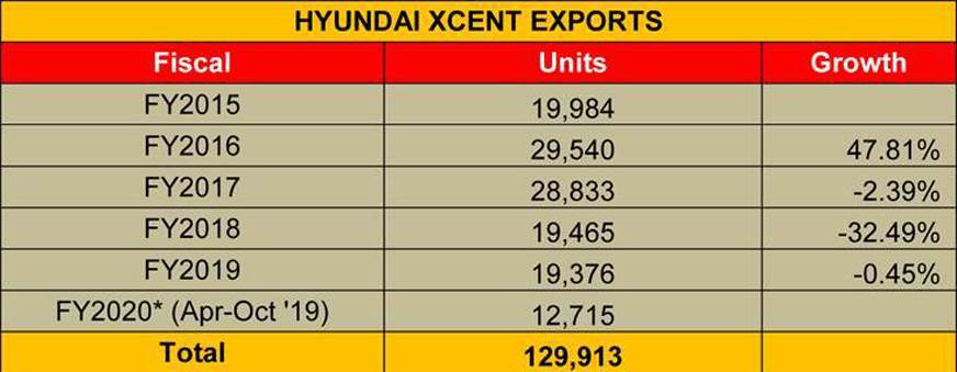 现代Xcent - 这也旨在成为印度的出口模式 - 已看到1,29,913个单位运送到海外市场五年多。