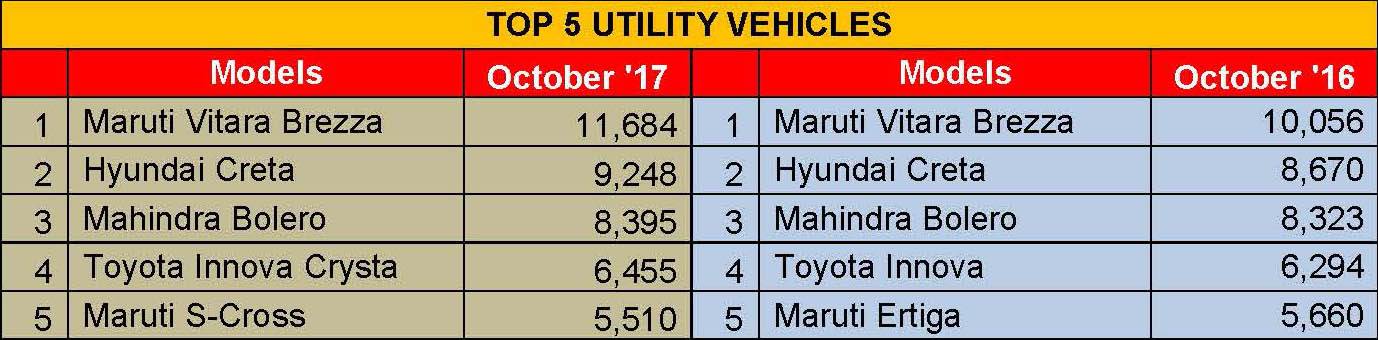 2017年10月,UV段仍然浮动,累计销售额为79,323个单位,增长率为12.44%。这意味着该分部占印度本月销售的总乘用车总量的28.34%。