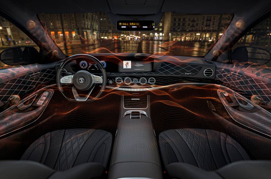这是一个相当有趣的概念。它采用特殊开发的执行器振动汽车机舱内的装饰和表面(以类似的方式到扬声器的隔膜)以产生不同频率范围的声音。