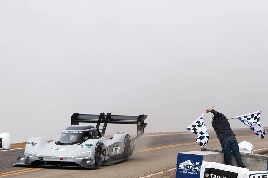 从派克山顶国际山爬坡的速度下,罗马杜马斯的新纪录将在他的电动680hp大众id r.上留下稍微短的古纸山坡课程。
