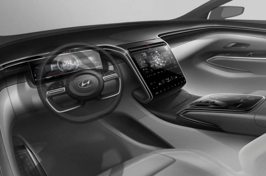 Next-Gen Tucson的内部布局是全新的,与外部照片Hyundai发布,内部是用草图预览的。仪表板和中心控制台在双音黑色和灰色主题中完成,Hyundai似乎最小化了在机舱内使用开关和旋钮。大型垂直导向的中心控制台具有“浮动”效果,大量触摸屏信息娱乐系统跨越其宽度,就像在新的克里塔一样。AC控制等容纳在屏幕下方,并且SPY图像也显示了电子,按钮式齿轮选择器。现代也将在新图森提供全数字仪器屏幕。