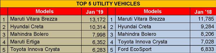 虽然崎岖的Mahindra Bolero仍然位于销售中的第三个,但UV在整体数字方面略有下降。Bolero于1月份销售7,998个单位,大部分数字来自农村和2级市场(2018年1月:8,206).