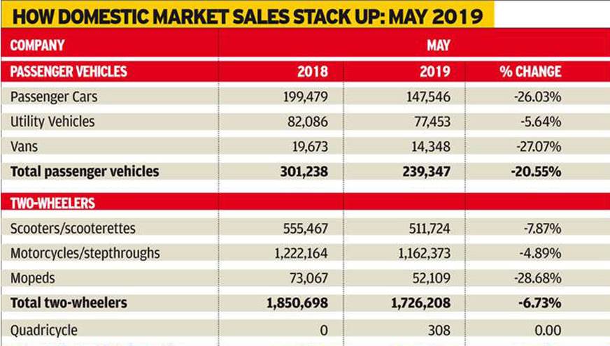 2019年4月至2019年5月的这一持续财政期间对该行业的持续影响并不是很好,PVS下降了20%,CVS 8.05和两轮车下降了12%。