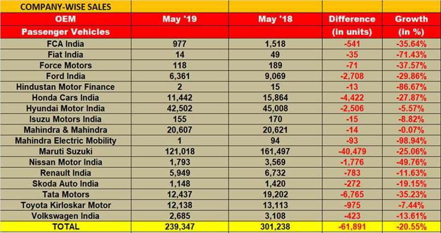 2019年5月的整体销售额下降了8.62%,累积批发数量为2,086,358股(2018年5月:2,283,262)。生产号码也与2,515,999单位的7.97%跌至7.97%(2018年5月:2,733,762),许多OEM的报告观察预定和未划分的NPDS(无生产日)到中等库存,而不是将股票推向经销商。自2018年11月以来,乘用车部门的生产已处于负面,自今年1月以来,双轮机构开始采取纠正措施。