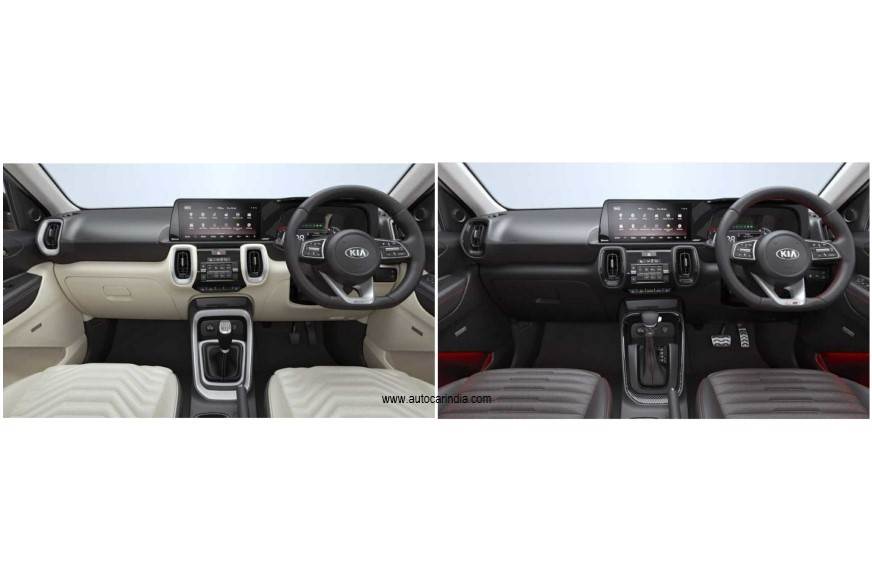 Kia SONET共有三个发动机和五个变速箱选项,所有这些都可以使用技术线型号。GT线放弃了1.2升汽油发动机,只能与1.0升涡轮汽油和1.5升柴油发动机有手动和自动变速器选项。天然吸气的1.2汽油仅适用于HTE,HTK和HTK +修剪; 1.0升Turbo-Petrol可提供HTK +向上,而自动选项 - 7速DCT(Turbo-Petrol)和6速转矩转换器汽车(Turbo-Diesel)将在Mid-Spec HTK +中提供装满的GTX +修剪。有趣的是,1.0 Turbo没有手动变速箱选项 - 只需6速IMT(消除离合器踏板)和7速DCT。除了基础HTE和HTK装饰外,IMT将提供所有型号。