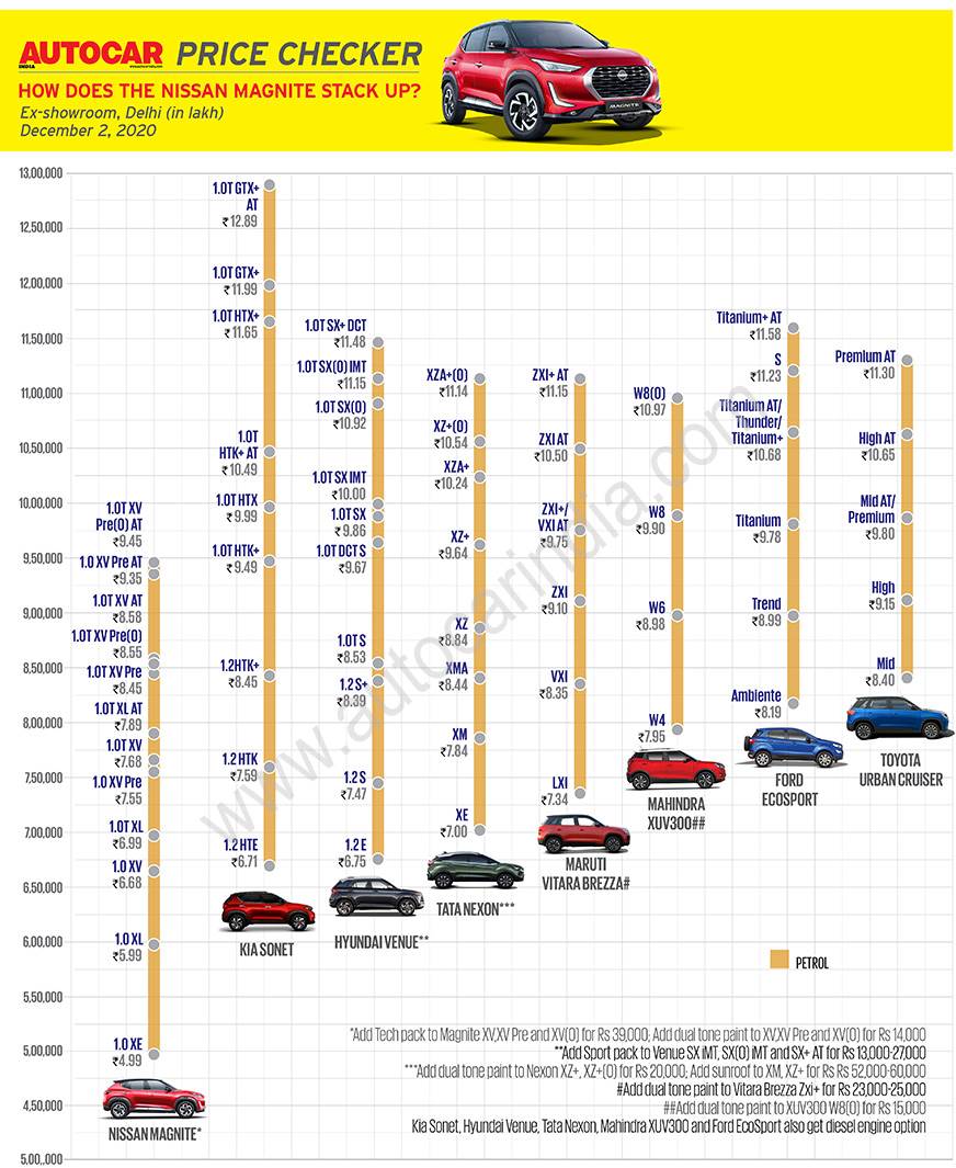 作为一个CompactSuv,日产巨头将面临来自Wathia Sonet,Hyundai Venue,Mahindra XUV300,Tata Nexon,Ford Ecosport,Maruti Suzuki Vitara Brezzaandthetoyota Urban Cruiser。