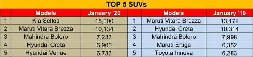 2020年1月的五个最畅销的SUV,46,000个单位,占SUV总量的54%和上个月的MPV销售额为84,929个单位,显示它们在事物方案中的重要性。有两个月的财政年度结束,会有一个购买的爆发,可以使SUV分段达到百万单位销售里程碑吗?目前,这是1,89,360个单位短 - 这意味着3,156 SUV和MPV必须出售每一月和3月。认为这是可能的吗?让我们在4月1日找到,当BS6开始时。